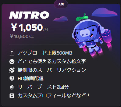 つまり、Discordを「毎日使う環境」として捉えているなら、1000円は十分に見合う金額です。