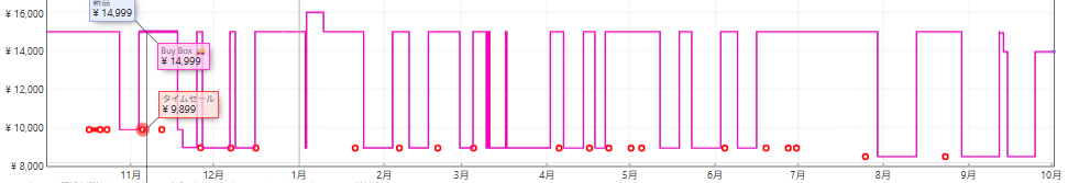 セールの時は8300円くらいなので最高値で買うと5000円くらい損します!定期的に値下げしているみたいなので注意が必要!