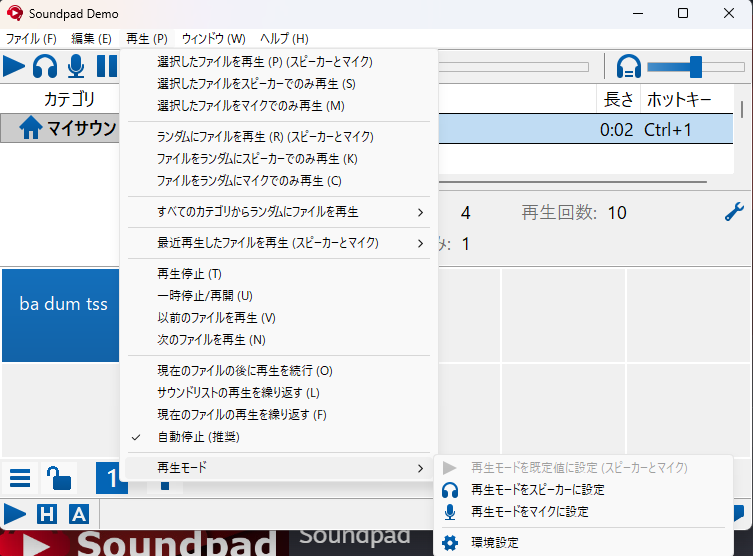 Soundpadでは、音を自分だけに聞かせる、相手だけに送る、自分と相手の両方に聞かせる、といった再生方法が用意されています。