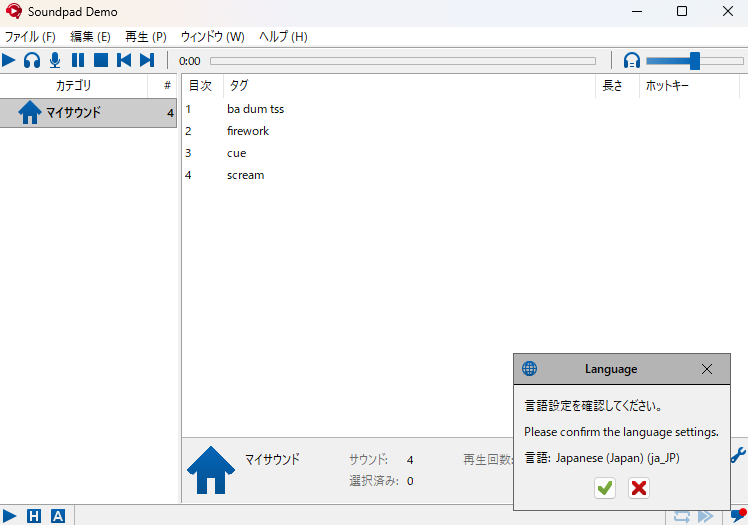 たとえば「F8を押したら笑い声」「F9を押したら了解ボイス」といった感じで、音をすぐ再生できるようになります。